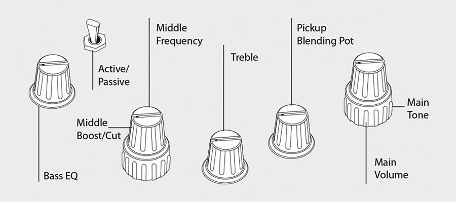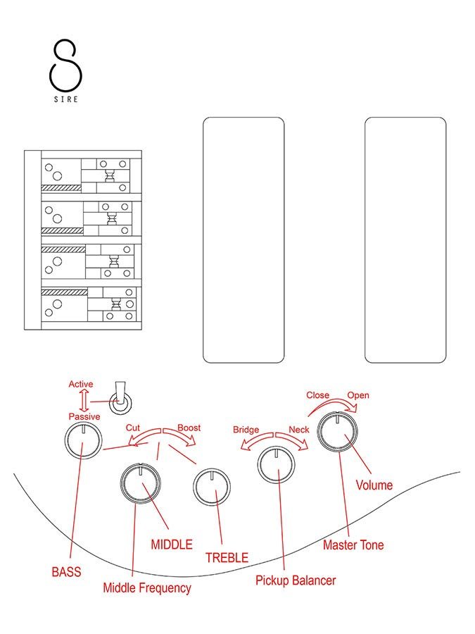 Composed of a 3-band EQ and a switch allowing complete tonal control from the active or passive modes, when combined with Marcus Blue Humbucker Pickup produces strong and solid mid-tones.
