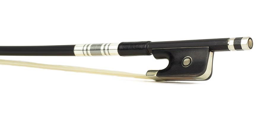 cello bow, 3/4, glass fiber/black, round, ebony frog, parisian eye, braided winding