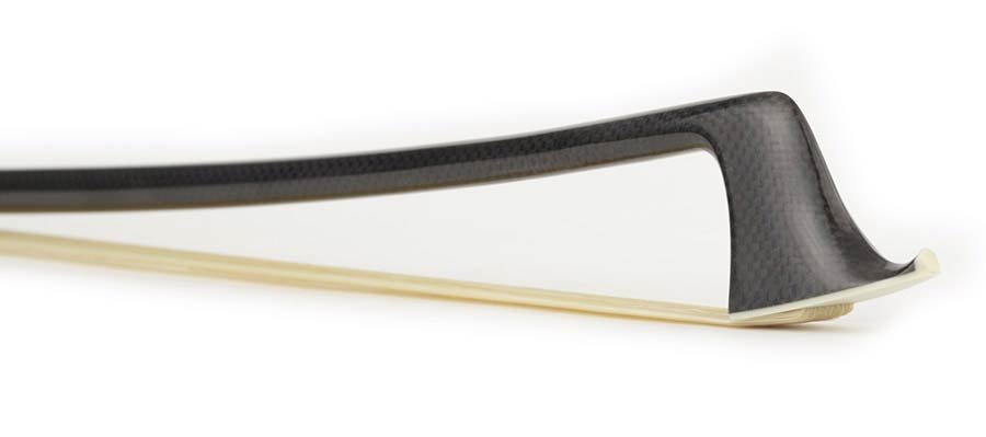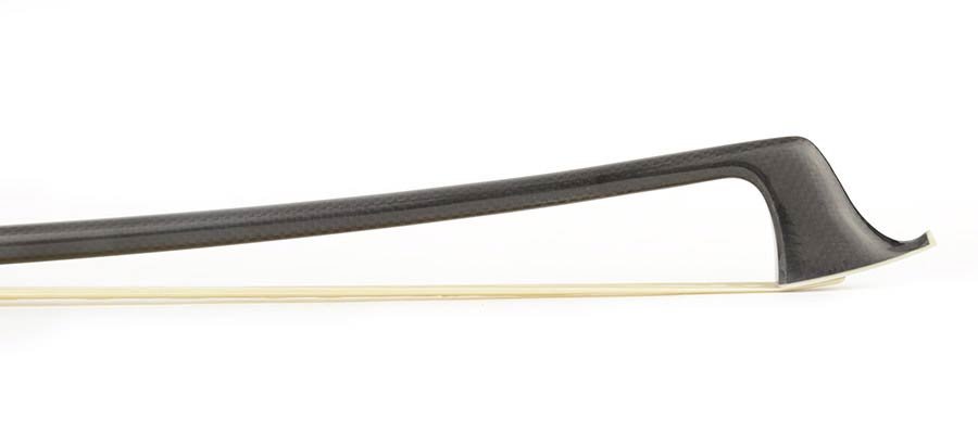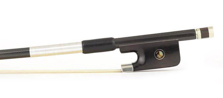 cello bow, 4/4, carbon fiber/pattern, round, ebony frog, parisian eye, fully nickel mounted