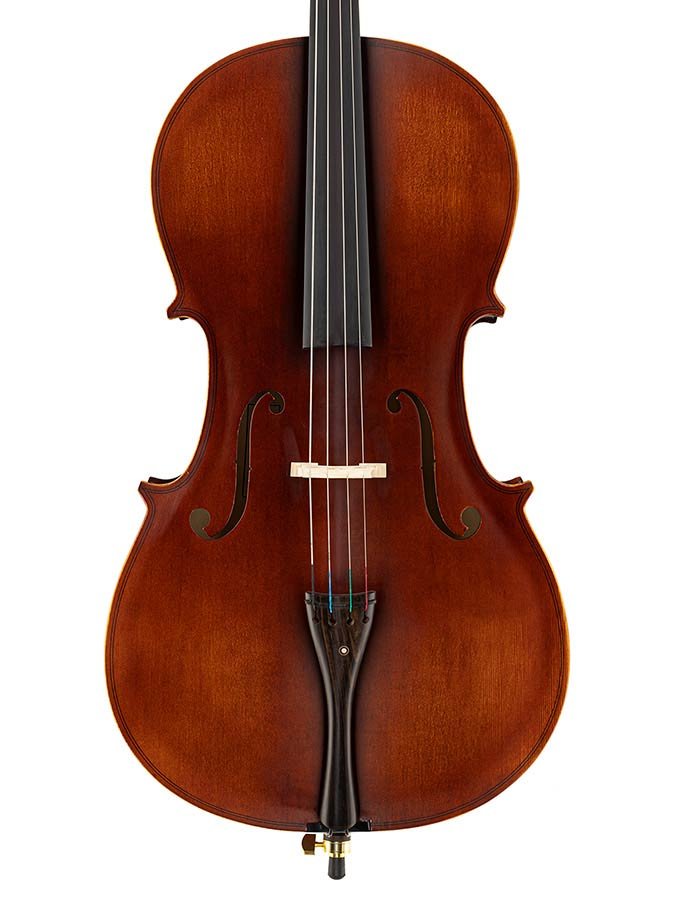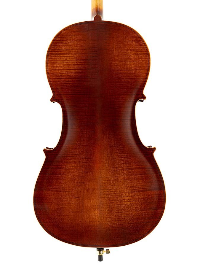 cello outfit 1/2, laminated with flamed back & sides, ebony fittings, bag and bow