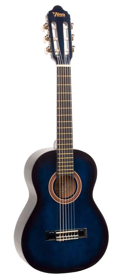klassieke gitaar 1/4, linden body, esdoorn fb, hoogglans finish, sunburst blauw