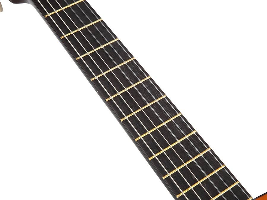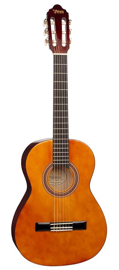 The Valencia Series 100 is a fully featured, nylon string guitar that’s affordable enough for any guitarist. Its neck scale length allows you to play with true classical finger style. As a result, it is just what you need to develop proper playing technique. Whether you’re a very young player or a little older, the Series 100 range offers a wide choice of instrument sizes. This ensures a correct fit for all players.