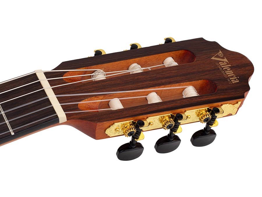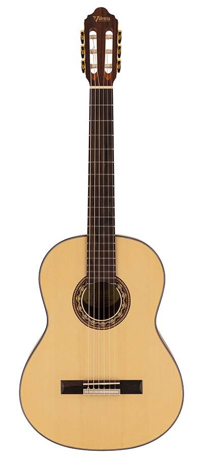 Gold machine heads with black button tuners give the Valencia Series 300 range a uniqueness not offered by any other brand. With a transparent, satin finish and stylish rosette decoration the Series 300 is truly inspired!