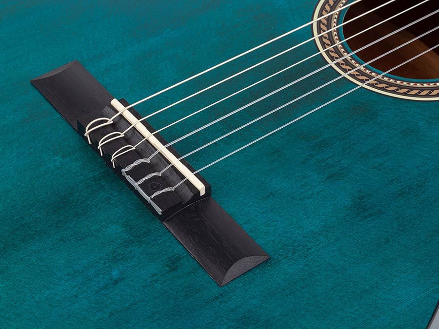 klassieke gitaar 4/4, sitka sparren top, nato zij- & achterblad, transparant blauwe finish