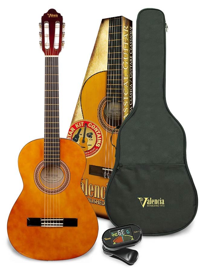 The package includes a Valencia branded nylon carry bag as well as an electronic guitar tuner.