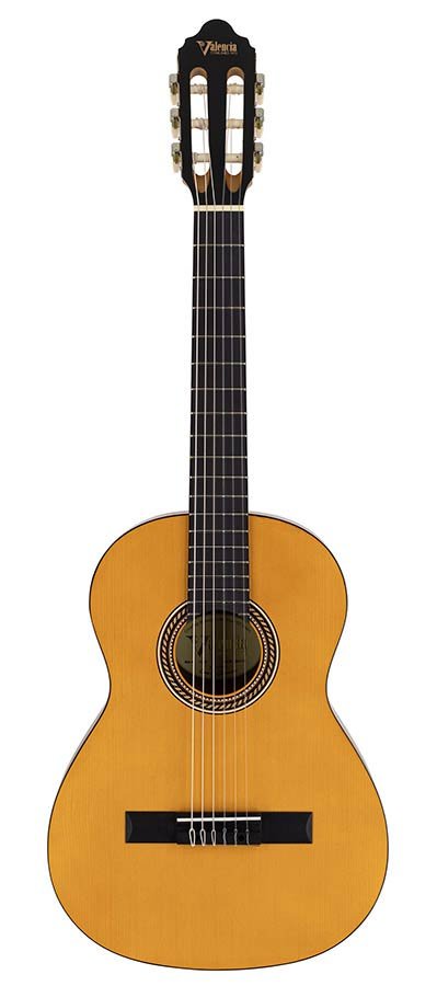 The Hybrid is especially designed to accommodate the smaller hands of some beginner players. The VC203H has a 42mm nut with 580mm scale length on a 3/4 size body.