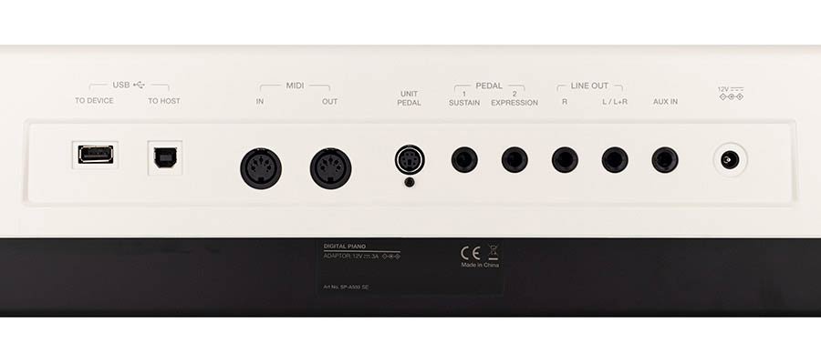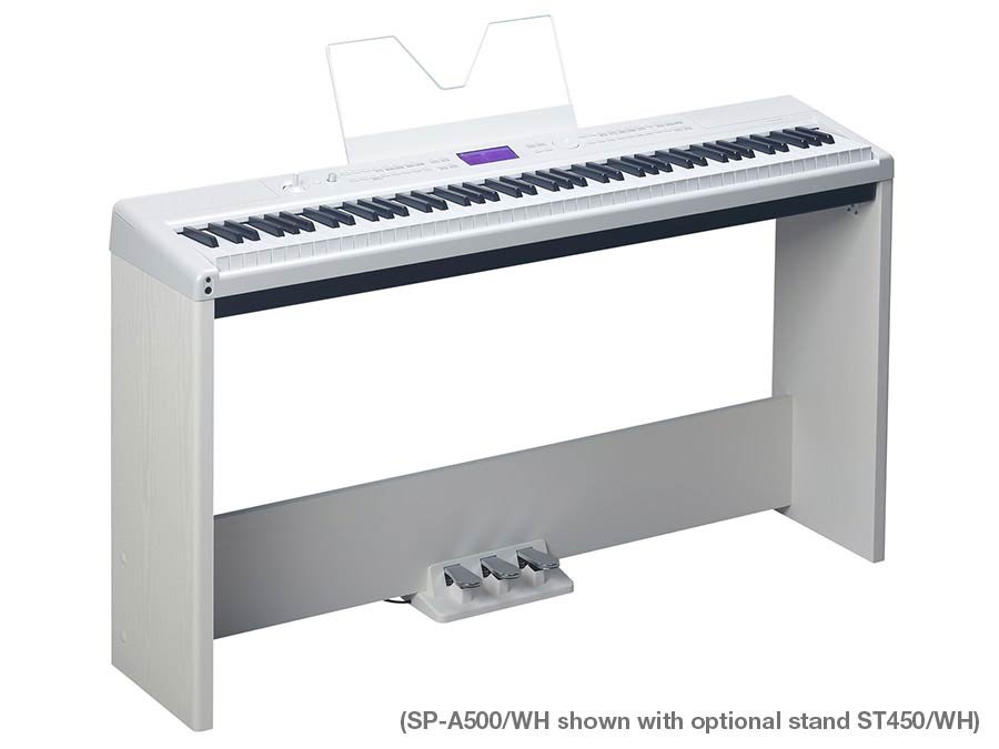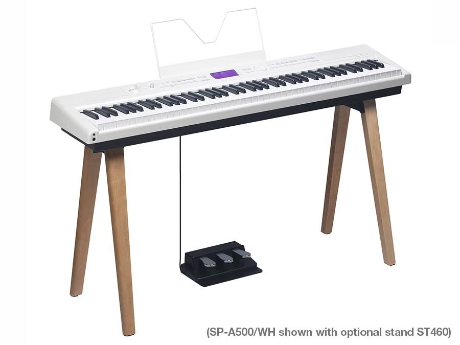 This model comes with a high-quality sustain pedal and boasts an extensive range of instrument sounds, accompaniment styles, and digital effects. Its built-in stereo speakers deliver powerful sound, making it ideal for both stage performances and home use. The SP-A500 also functions as an audio interface, allowing easy recording and playback with your favorite DAW.
