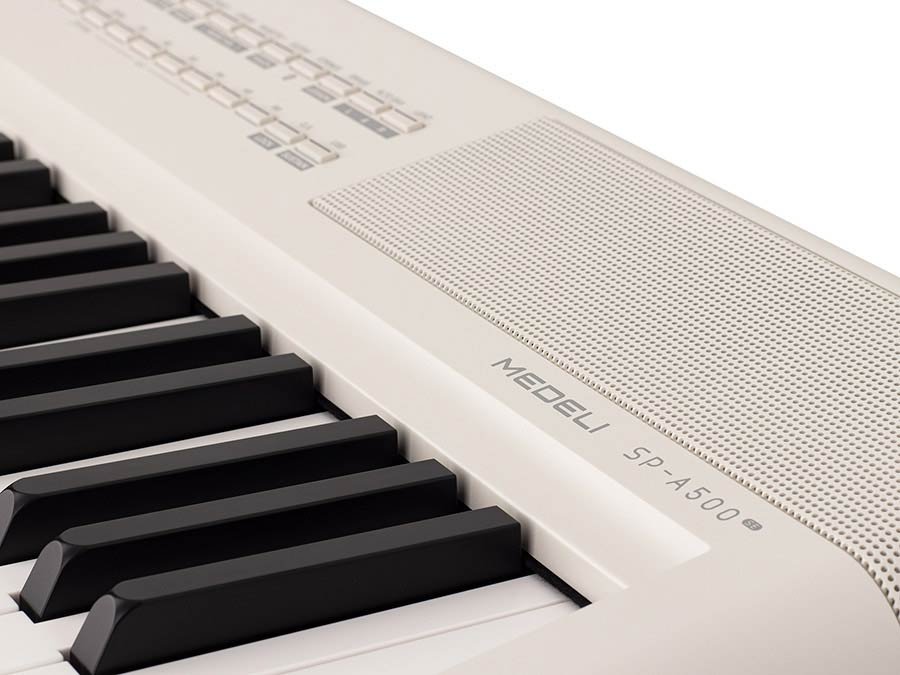 The Medeli SP-A500 is a versatile and compact digital stage piano designed to offer an authentic piano experience along with the accompaniment of a full band. It features 88 graded hammer action keys and superior acoustic sound quality, providing exceptional playability for all skill levels. The SP-A500 includes Bluetooth Audio and MIDI, enhancing its connectivity options for seamless integration with various devices.