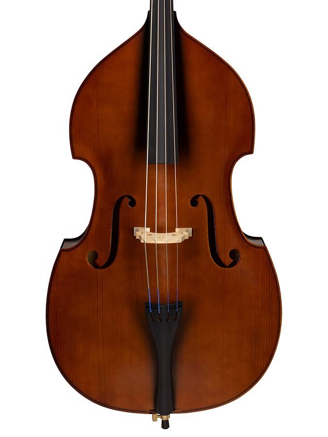 double bass outfit 1/4 solid top, nitro varnish, ebony fingerboard, bag and bow