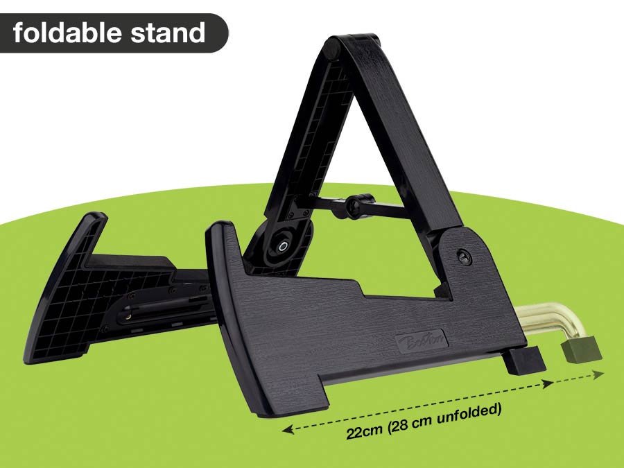 The Boston GS-450 is a small but stable and foldable instrument stand. You can use it for guitars (acoustic and electric), bassguitar, mandolin, bouzouki, ukulele and more.