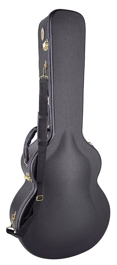 guitar case, wood, arched, with lock and shoulder strap, shaped model, jazz 16 inch