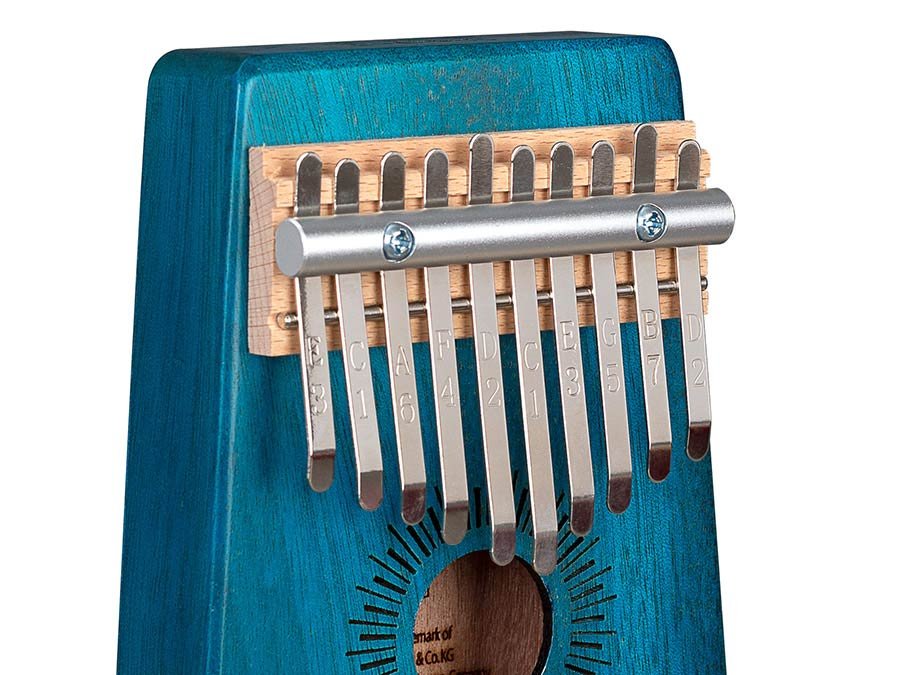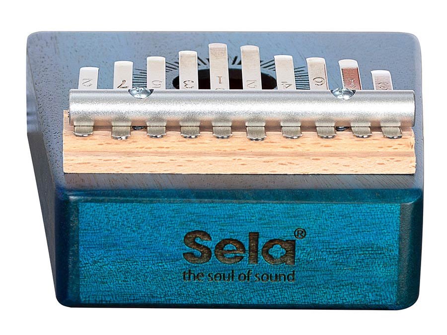 The Sela Kalimba 10 is made of high quality mahogany wood. The body amplifies the low frequencies and thus produces a full, clear and warm sound with a fascinating resonance. The high-quality metal keys are tuned in C major and have a range from c' - e'' (C4 - E5). The stamped notes on the sound keys make the Kalimba suitable for beginners as well as advanced players.