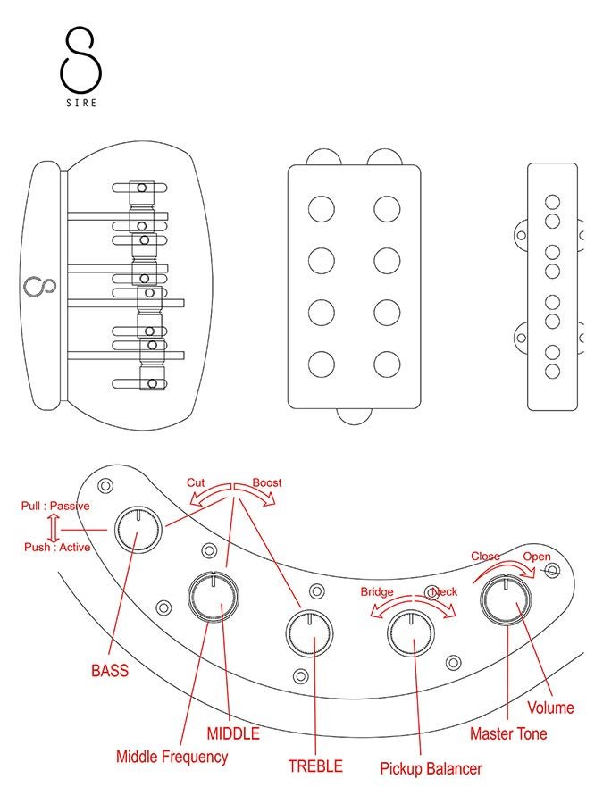 An active 3-Band preamp that includes volume/tone, blender, treble, bass, and middle frequency controls to attain any desired audio output of various players.