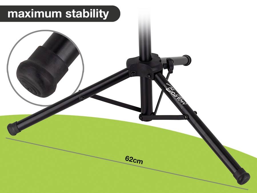 The ultrasturdy Boston OMS-302 stands its ground with its 3 metal legs and with rubber feet it will enhance grip and protect the floor at the same time.
