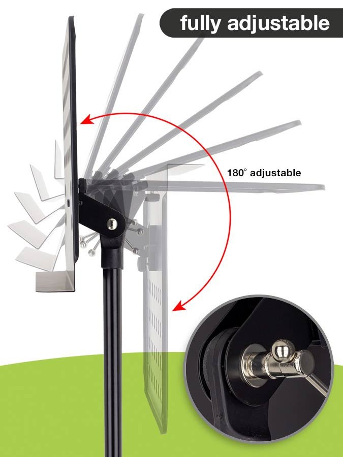 The height is adjustable with a user-friendly knob which makes the OMS-302 very easy to set up.