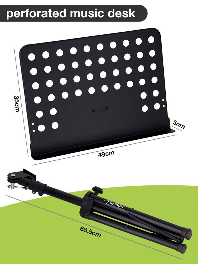 metal music stand, black, perforated desk, desk size 48x35cm