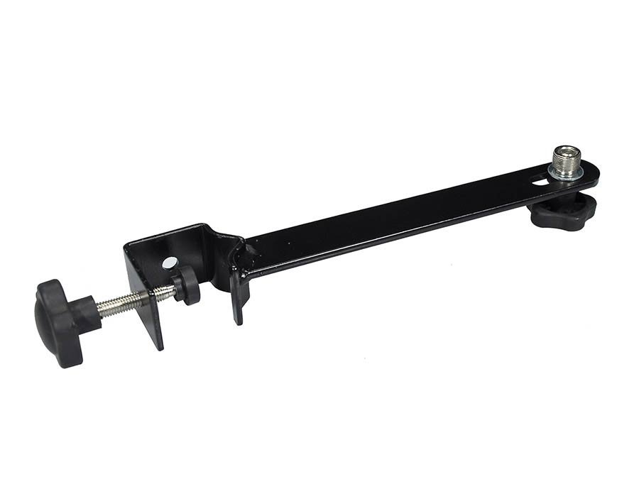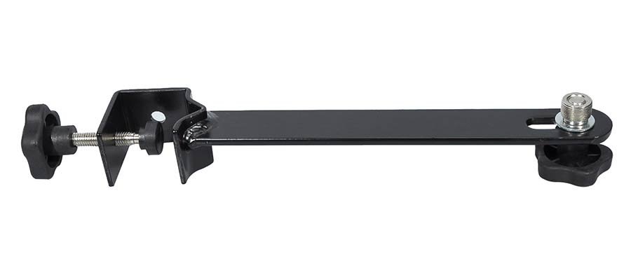 microphone stand adaptor, black, bolt clamp, 5/8″ thread, length 26,4 cm.