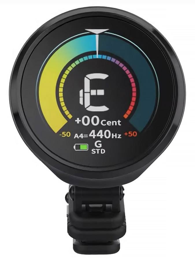 rechargeable chromatic clip tuner, with multi color display,16 tuning visuals, auto power on/off
