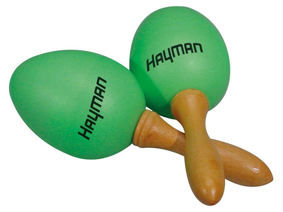 shaker eggs, plastic, pair, with handle, green, 35 grams