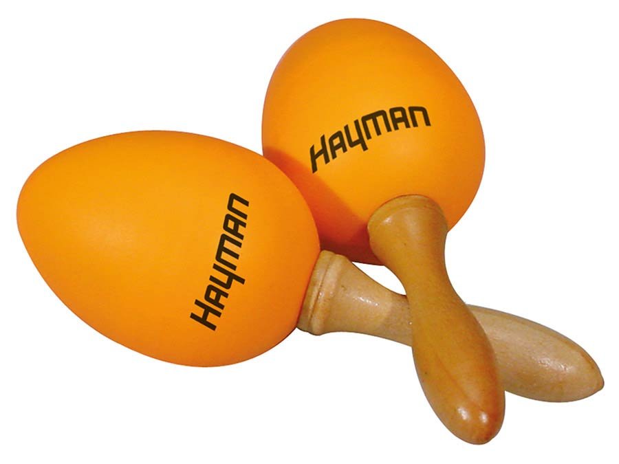 shaker eggs, plastic, pair, with handle, orange, 40 grams