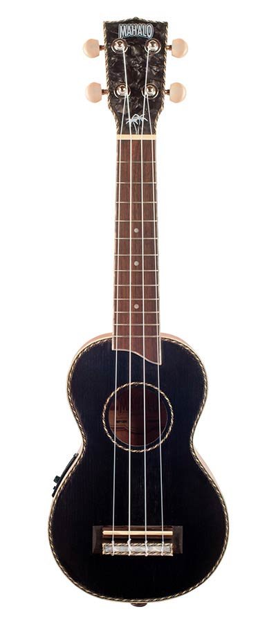 solid top soprano ukulele, with MEQ2 9v preamp, black, with bag