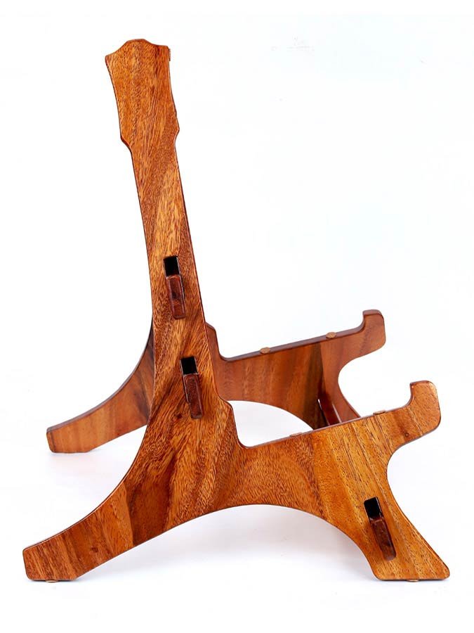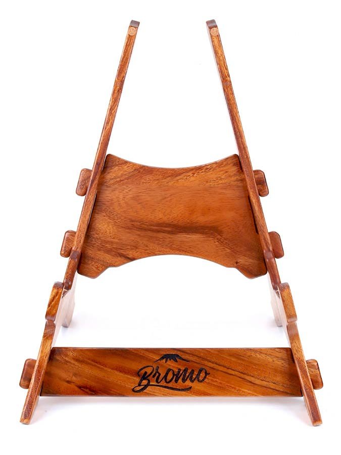 solid Trembesi wooden guitar stand, with cork supports (large logo at front of the stand)