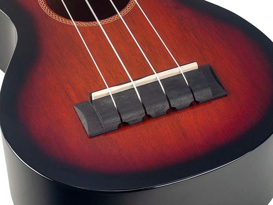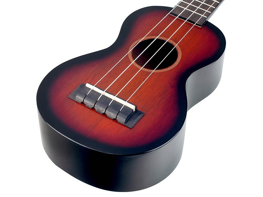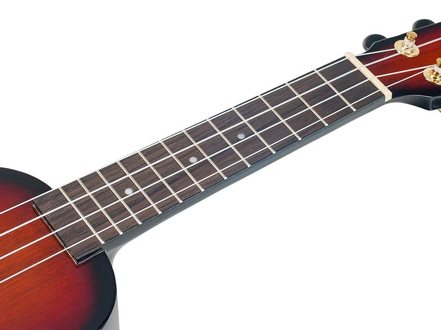 sopraanukelele, gewelfde achterkant, gitaarmechanieken, Aquila snaren, 3-tone sunburst