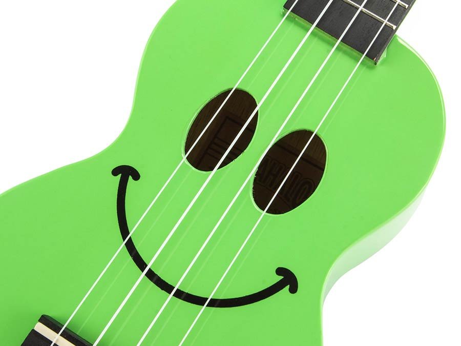 The famous yellow smilie, an American, Dutch, French, German or English flag, and a soprano ukulele! These Mahalo ukuleles are perfect for beginners who would like to have something completely different from a standard wooden ukulele.
