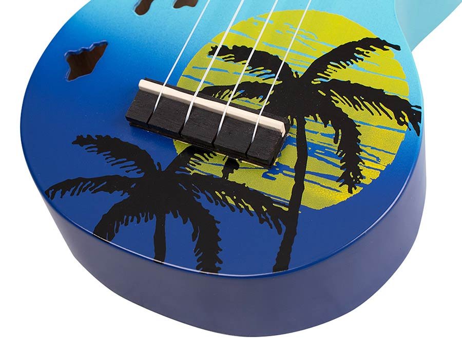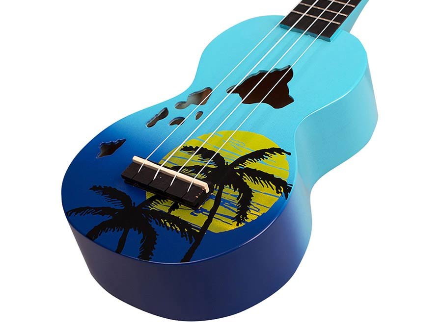 Aloha! The Mahalo Designer Series celebrates Hawaii, the birthplace of the ukulele. Available in four striking sunburst colors, these ukuleles feature an attractive sunset palm tree motif and soundholes shaped like the Hawaiian islands.