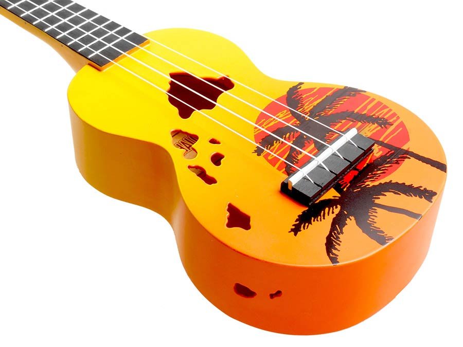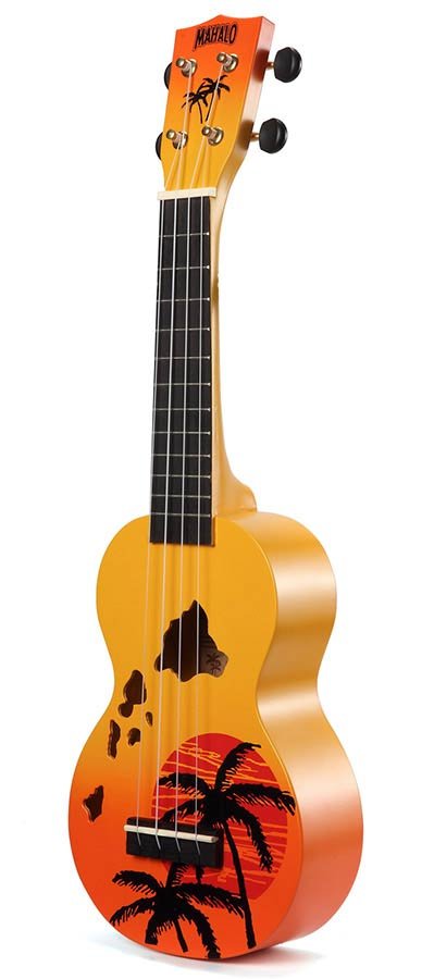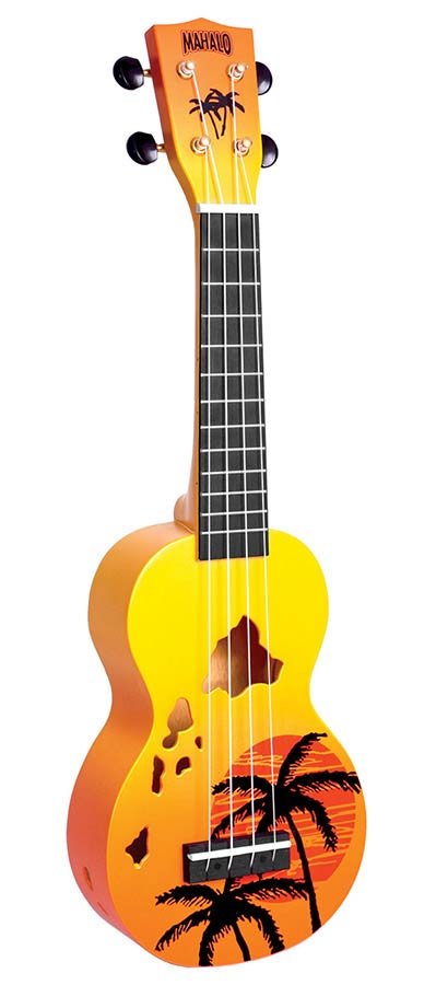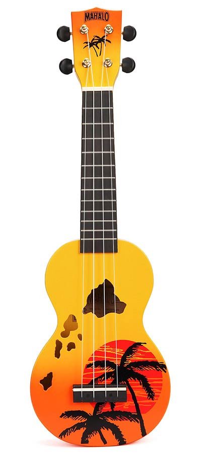 Aloha! The Mahalo Designer Series celebrates Hawaii, the birthplace of the ukulele. Available in four striking sunburst colors, these ukuleles feature an attractive sunset palm tree motif and soundholes shaped like the Hawaiian islands.