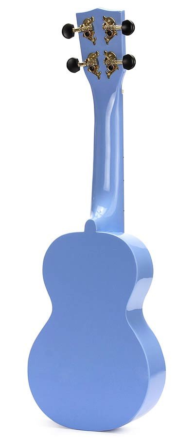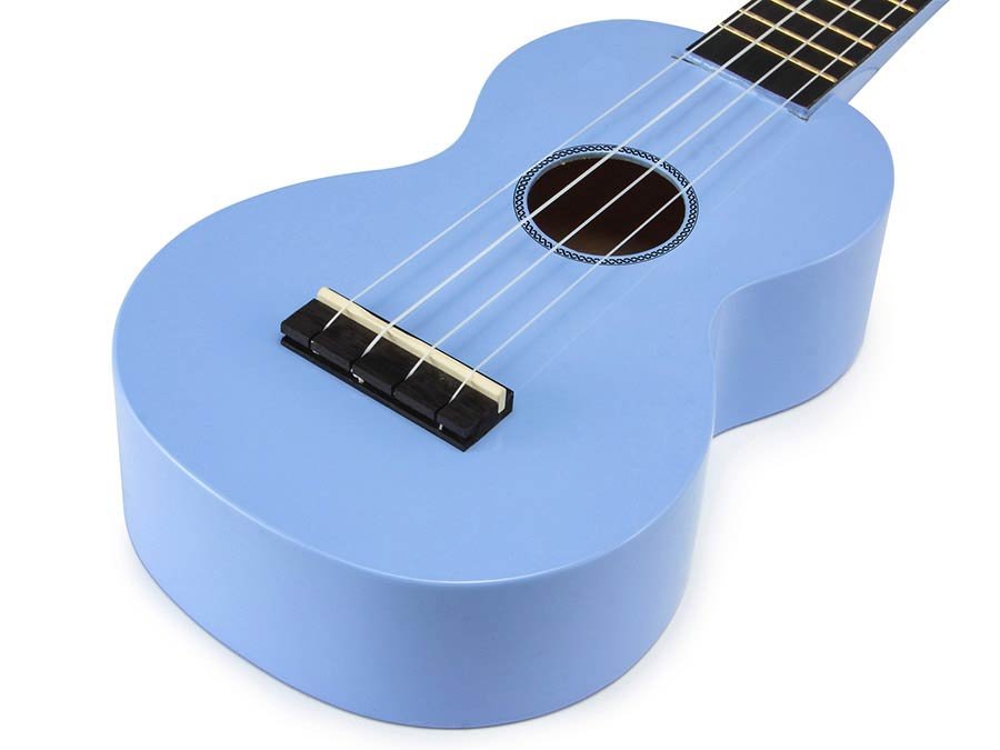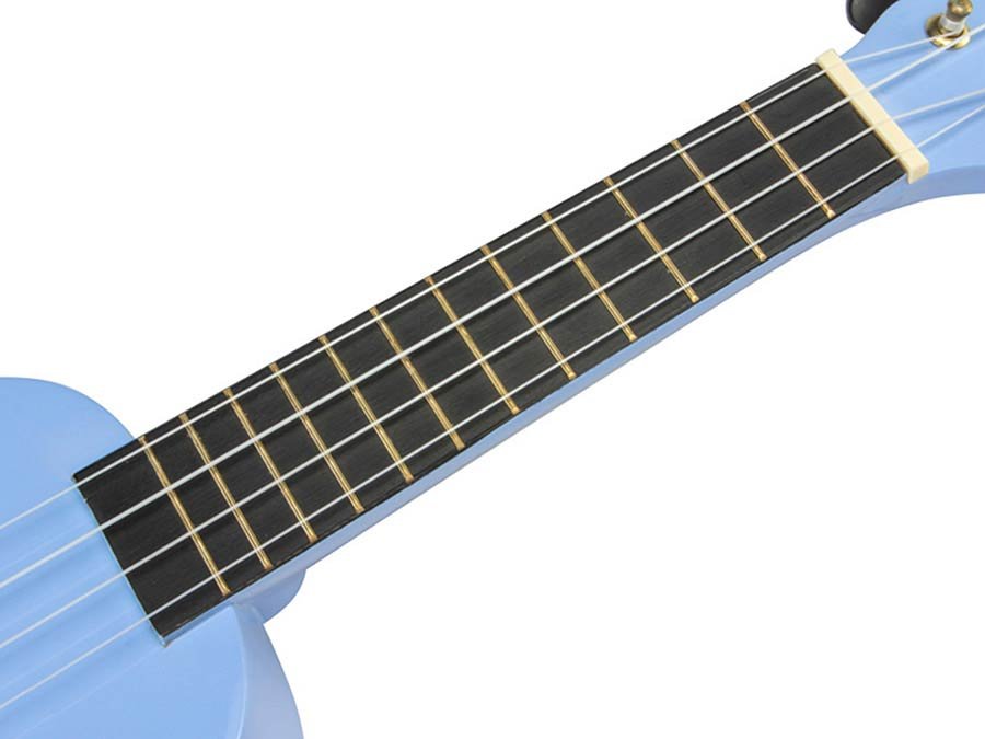 ukelele, met gitaarmechanieken, Aquila snaren, Nubone zadel en hoes, lichtblauw