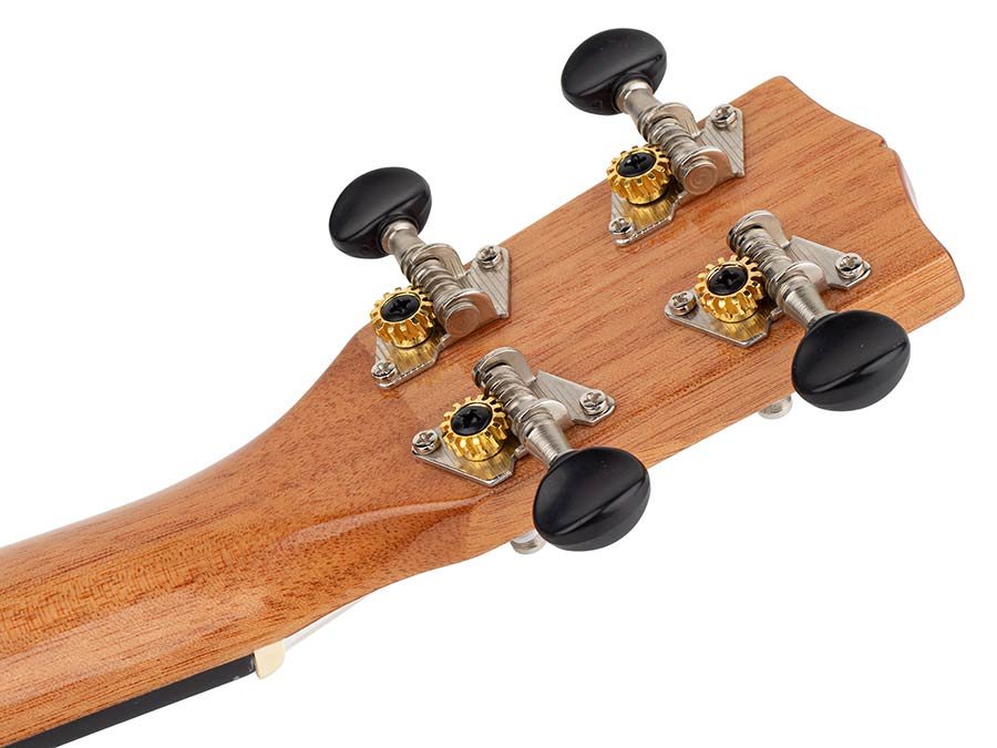 Mango wood is known for its warm, rich tone and subtle overtones, giving each note a beautiful depth. The premium Aquila strings provide excellent tension and clarity, perfect for musicians of all levels. The ebony fingerboard offers a smooth playing surface for effortless playability. The elegant maple binding adds a refined touch, accentuating the natural beauty of the mango wood, while the high-gloss finish gives the instrument a sleek, polished look. The open headstock design not only provides a modern, stylish appearance but also contributes to tuning stability and improved sound quality.