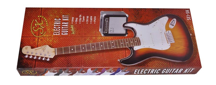 ST style electric guitar pack, 10W amp, bag, tuner, strap, cable & 6 picks, candy apple red