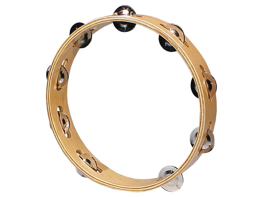tambourine, no drum head, wood, 10″, 9 zils