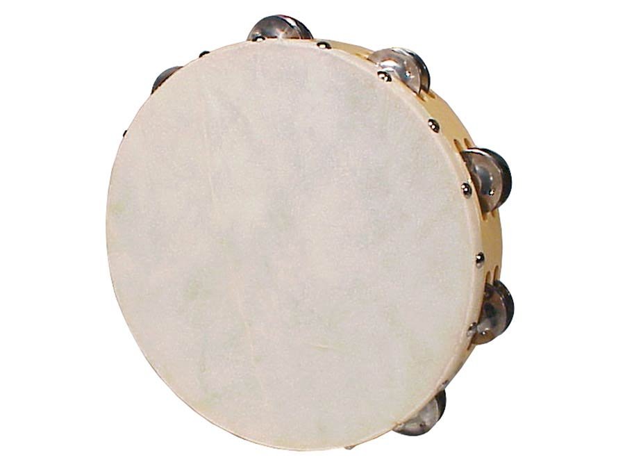 tambourine, rawhide skin, wood, 10″, 18 zils