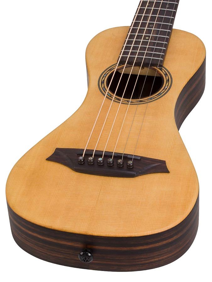 traveller guitar all solid tonewoods, amara ebony b&s & fb, natural, piezo, strap & heavy duty bag