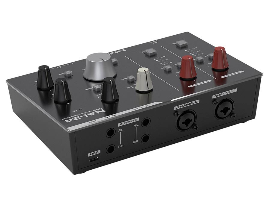 The NAI-24 is a user-friendly 2-input, 4-output audio interface, providing independent 48V phantom power control and LINE IN switching buttons. Features include HI-Z input, dual headphone independent monitoring, soft/hard monitoring mix adjustment, one-click stereo mode switching, and one-click loopback.