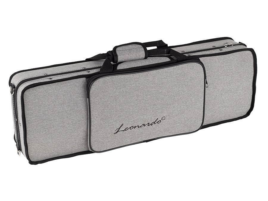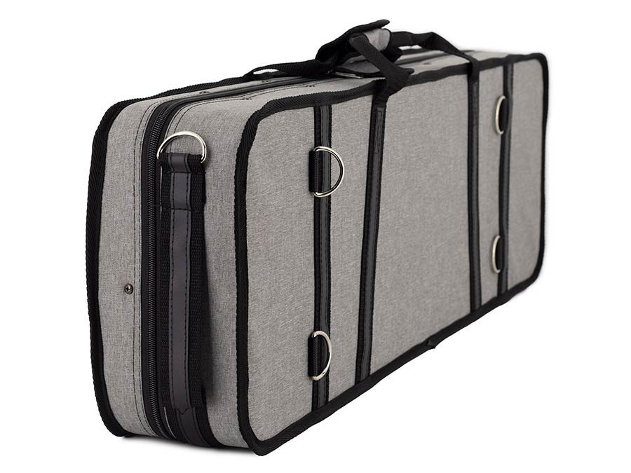 - Oblong case in styrofoam with 2 straps, a closed space for accessoires and 4 bow holders