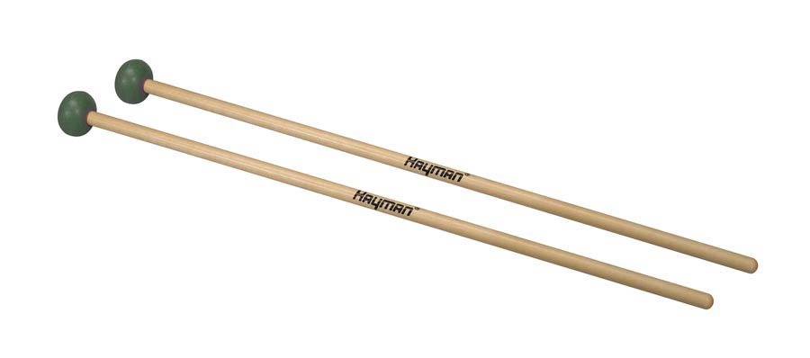xylophone mallets, 365 mm. maple handle, pair, 28 mm. medium hard green rubber head